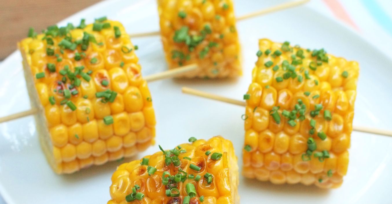 Ogrilovanou kukuřici ihned servírujeme s bylinkovým máslem. Klasy kukuřice můžeme popřípadě nakrájet na menší díly a servírovat na špejli.