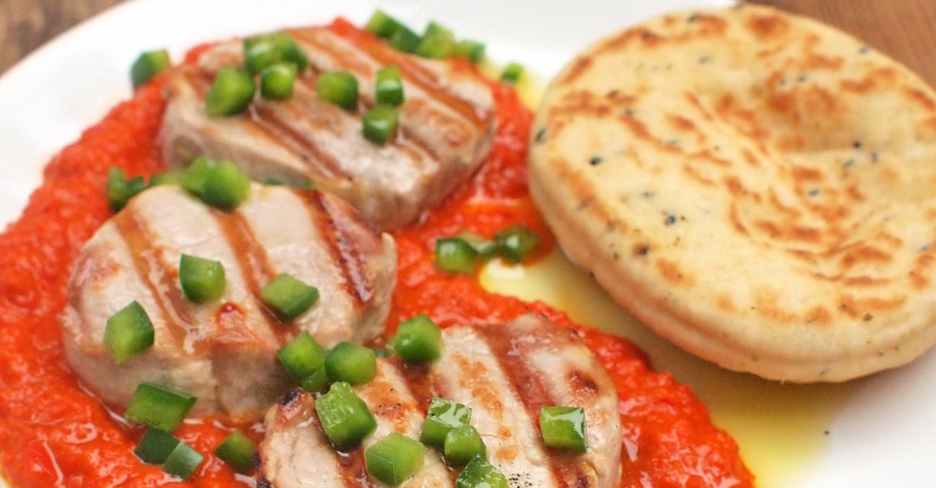 Grilovaná vepřová panenka s pečenými paprikami