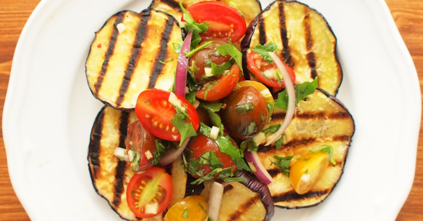 Grilovaný lilek s rajským salátem