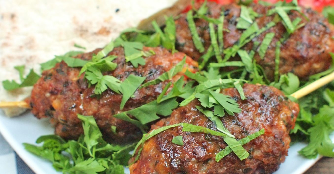 Kofty grilujeme na středně rozpáleném grilu. Průběžně otáčíme a pečeme asi 10 až 12 minut do úplného propečení. Grilované kofty pak servírujeme se zbytkem bylinek.
