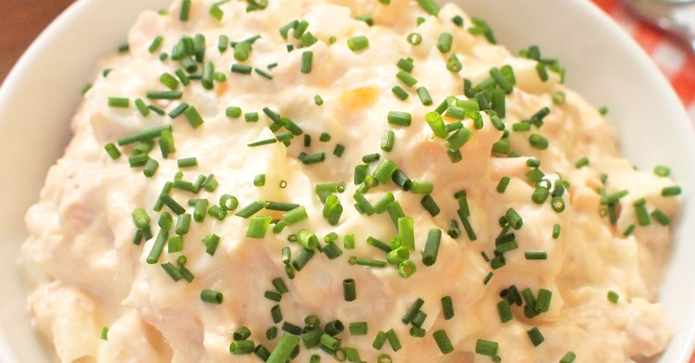 V míse smícháme tuňáka, vejce, bramboru, šalotku, lučinu a majonézu. Společně utřeme a dochutíme solí, pepřem a trochou citronové šťávy.