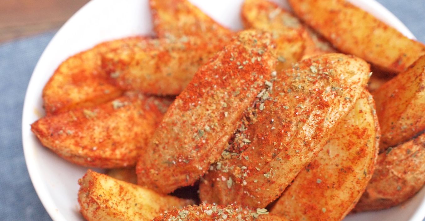 Brambory očistíme, pořádně vydrhneme a podle velikosti podélně nakrájíme na čtvrtiny nebo šestiny. Suroviny na pikantní sůl spolu dobře promícháme.