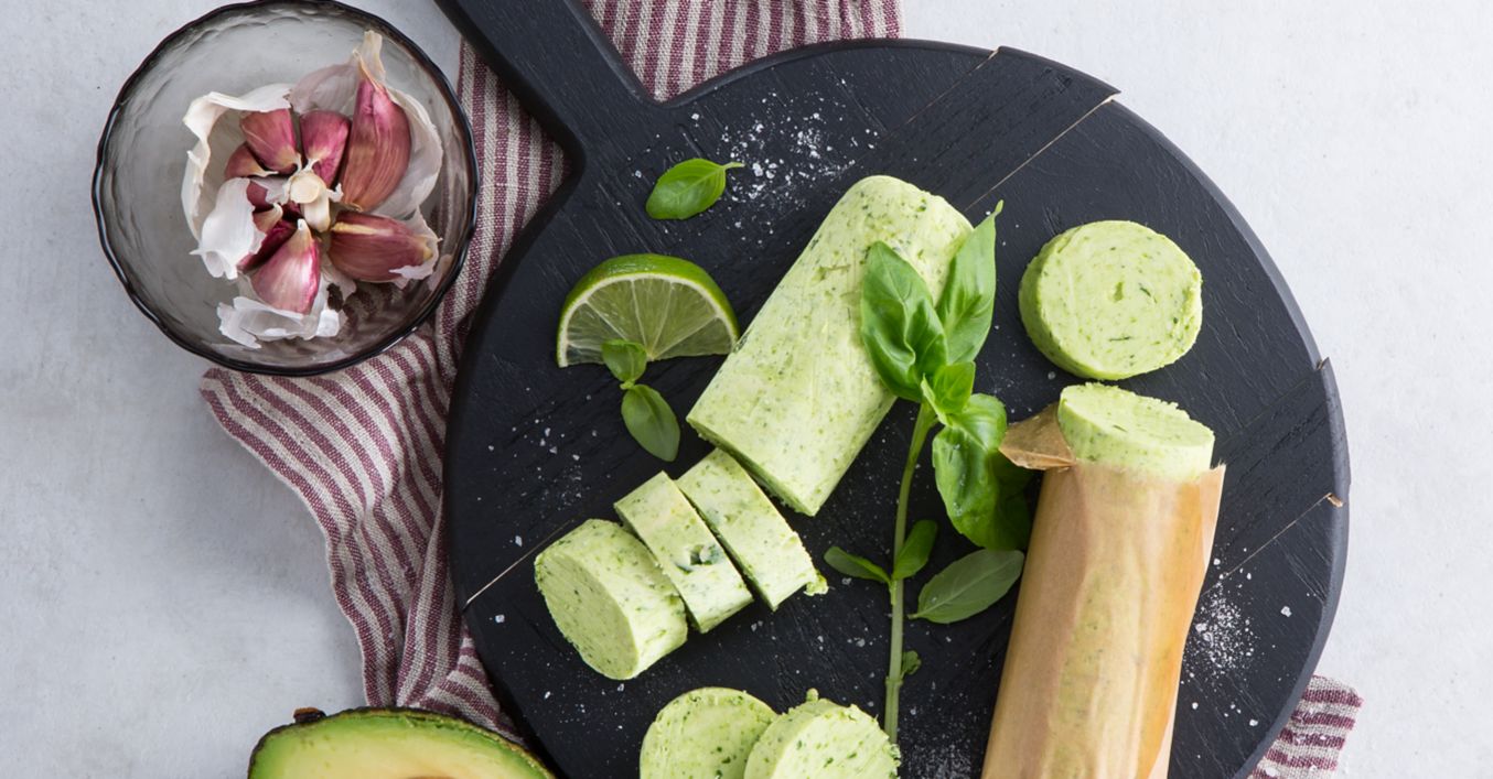 Avokádové máslo dochutíme solí a limetkovou kůrou. Máslo dáme na pečicí papír, zamotáme do válečku a celé necháme pořádně vychladit v lednici nejméně 1 hodinu. Avokádové máslo se perfektně hodí např. ke grilovaným krevetám.