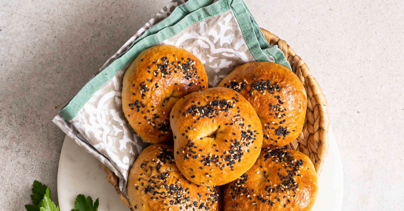 Vykynuté těsto rozdělte na 12 stejně velkých kousků. Z nich vytvarujte kuličky. Ve středu kuliček pak vařečkou nebo prstem vytvořte důlek. Bagely zakryjte utěrkou a nechte dalších 30 minut nakynout.