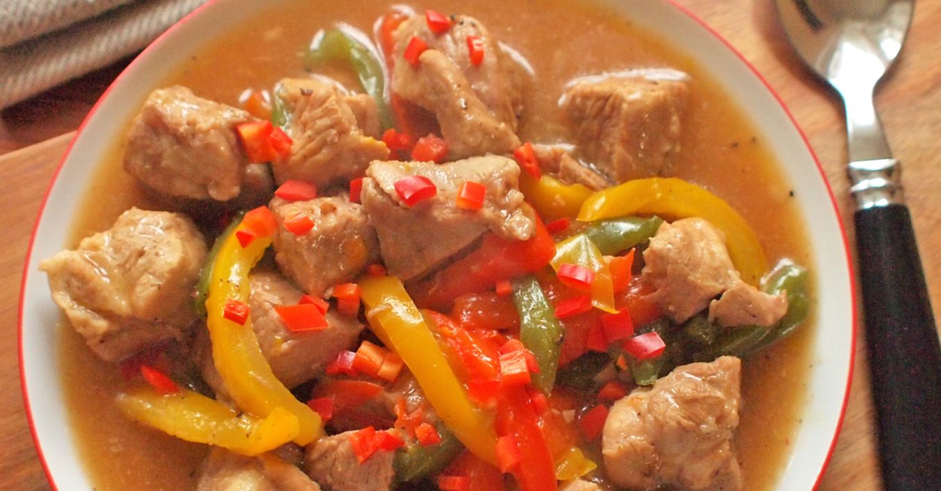 Krkovici očistíme a nakrájíme na větší kostky. Cibuli i česnek oloupeme a nasekáme nadrobno. Papriku i feferonky zbavíme jádřince a nakrájíme na nudličky.