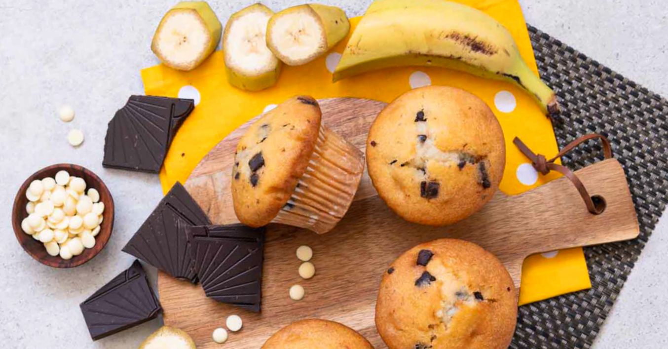 Banánové muffiny s bílou a hořkou čokoládou