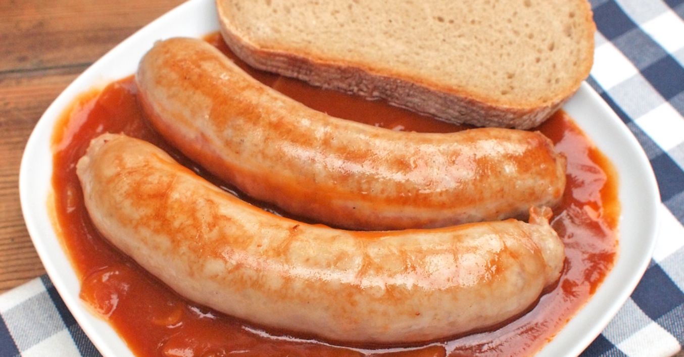Zalijeme pivem, přidáme kečup a promícháme. Do pekáčku rozložíme klobásky a dáme zapéct do trouby rozehřáté na 200 °C. Pečeme asi 30 minut. Podle potřeby podléváme tmavým pivem navíc.