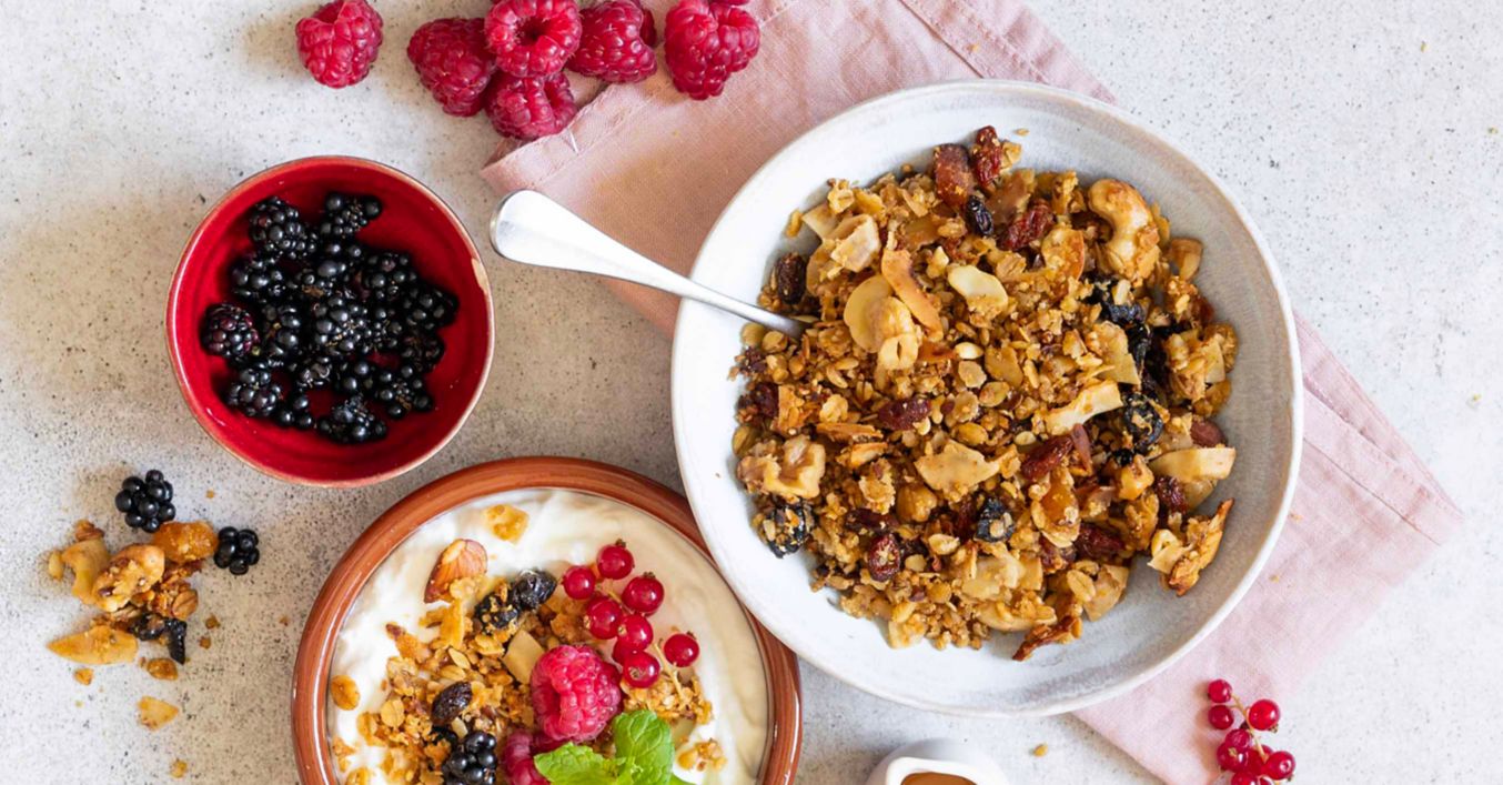 Podávejte s jogurtem, čerstvým ovocem a mátou.