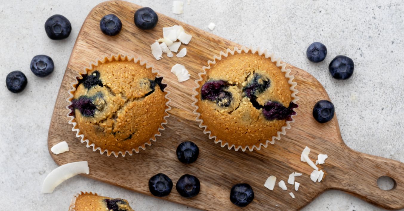 V druhé míse smíchejte mouku, kokos, prášek do pečiva, vanilkový cukr a sůl. Pak promíchejte s borůvkami.