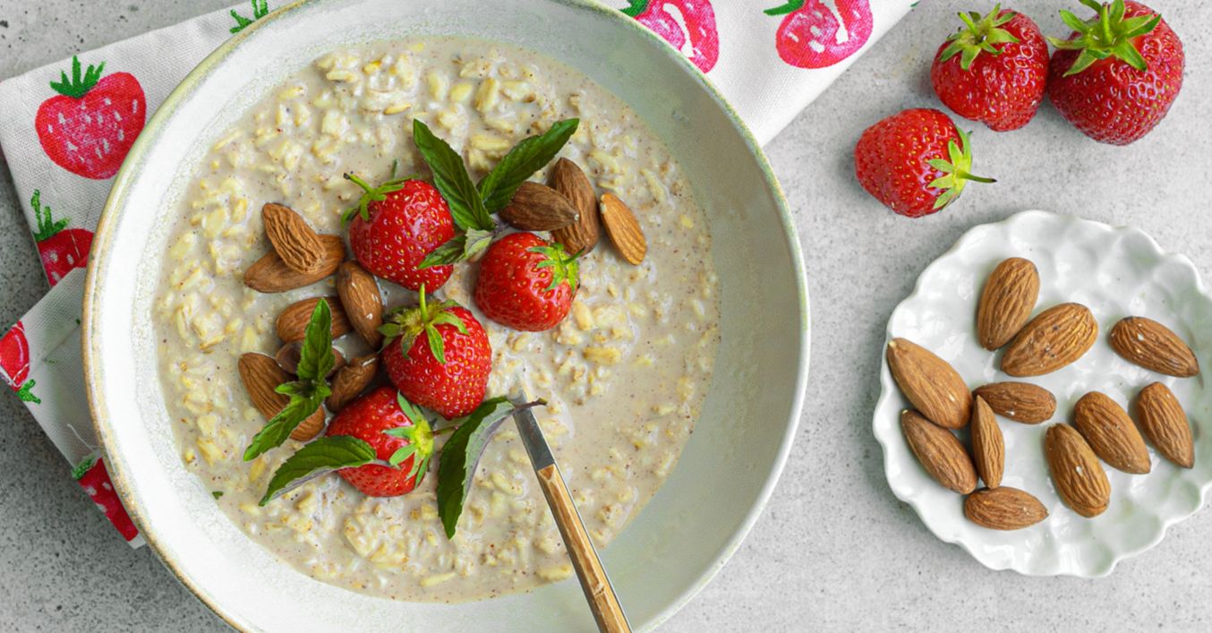 Podávejte s čerstvým ovocem, mandlemi a mátou.