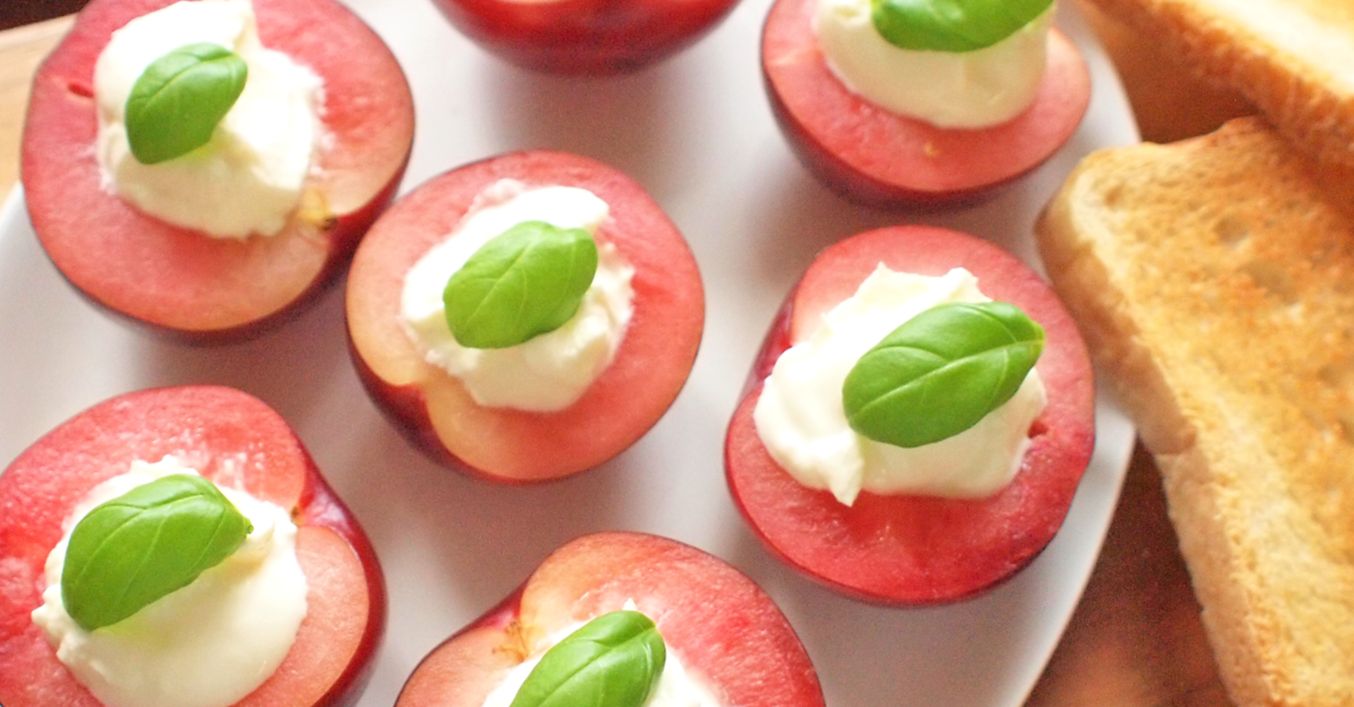 Blumy očistíme, vypeckujeme a rozkrojíme na poloviny. Střed pak ještě rozšíříme nožem, aby se do něj vešla náplň.