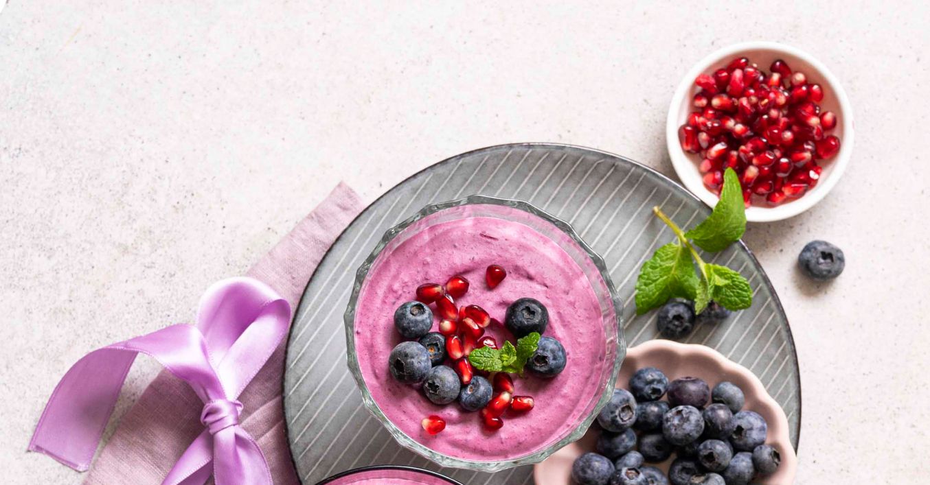 Pěnu podávejte s čerstvými borůvkami a mátou.
