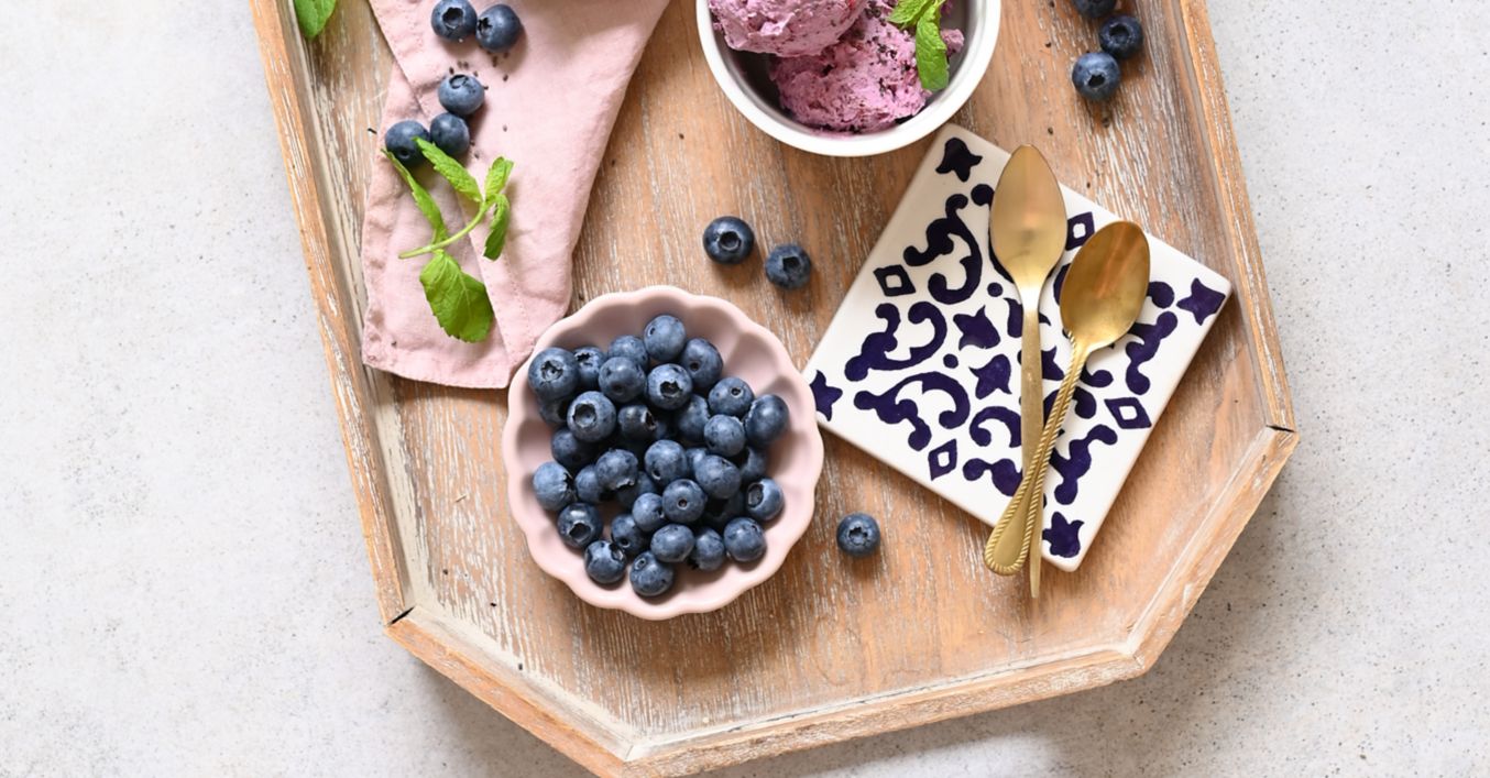Před podáváním nechte zmrzlinu povolit. Podávejte s čerstvými borůvkami a mátou.