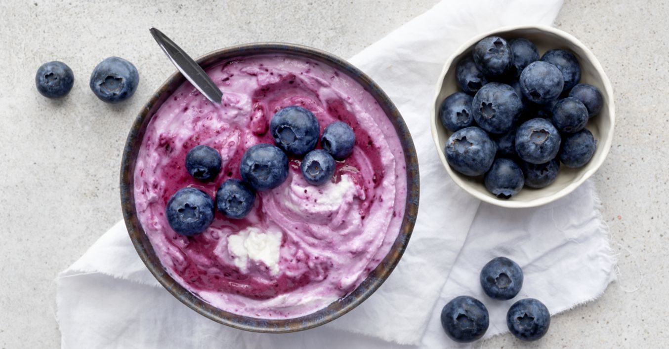 Tvaroh rozmixujte s banánem a borůvkami. Hned podávejte.