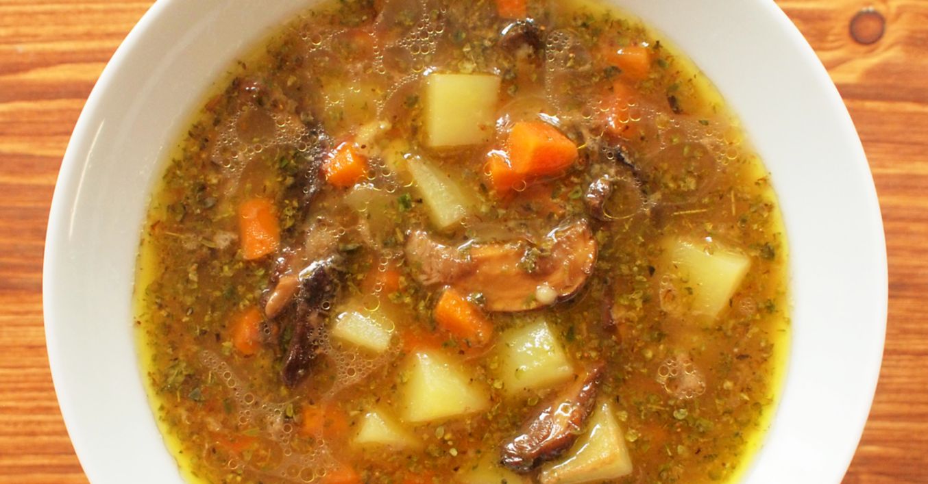 Přidáme hříbky, majoránku a ještě jednou orestujeme. Přidáme brambory, zalijeme vodou a povaříme do změknutí (asi 25 až 30 minut).