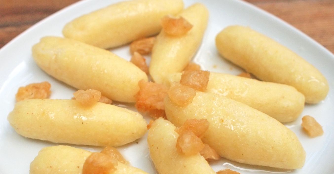 Noky vaříme ve vroucí vodě, dokud nevyplavou napovrch (asi 3 až 5 minut). Podáváme se škvarky a mastíme sádlem.