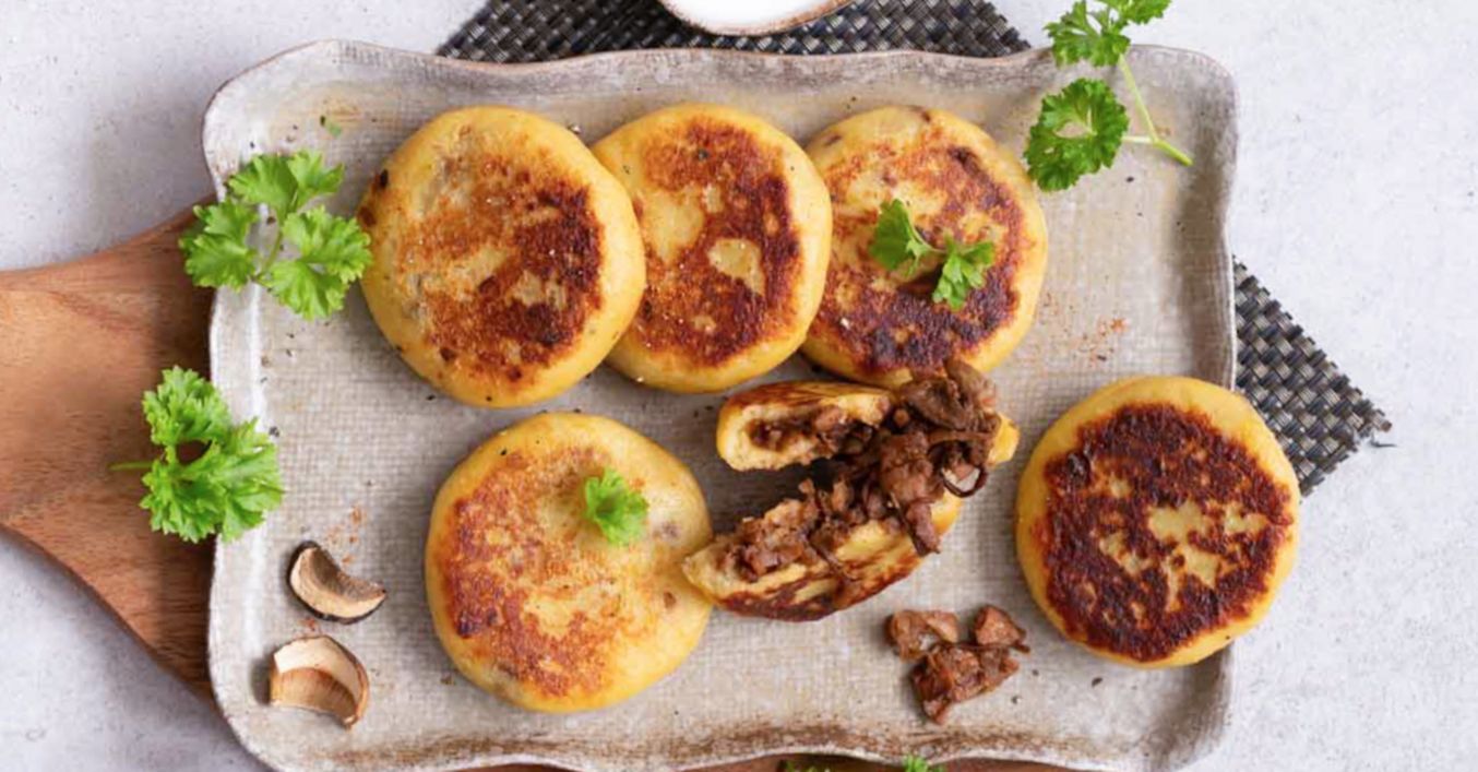 Bramborové placky plněné zeleninovo-houbovou směsí