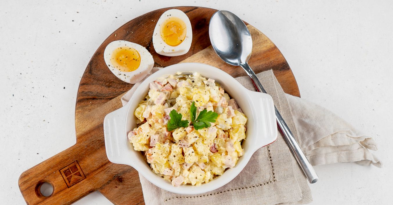 Brambory uvaříme ve slupce doměkka v osolené vodě. Necháme je zčásti vychladnout, oloupeme a nakrájíme na kostičky.