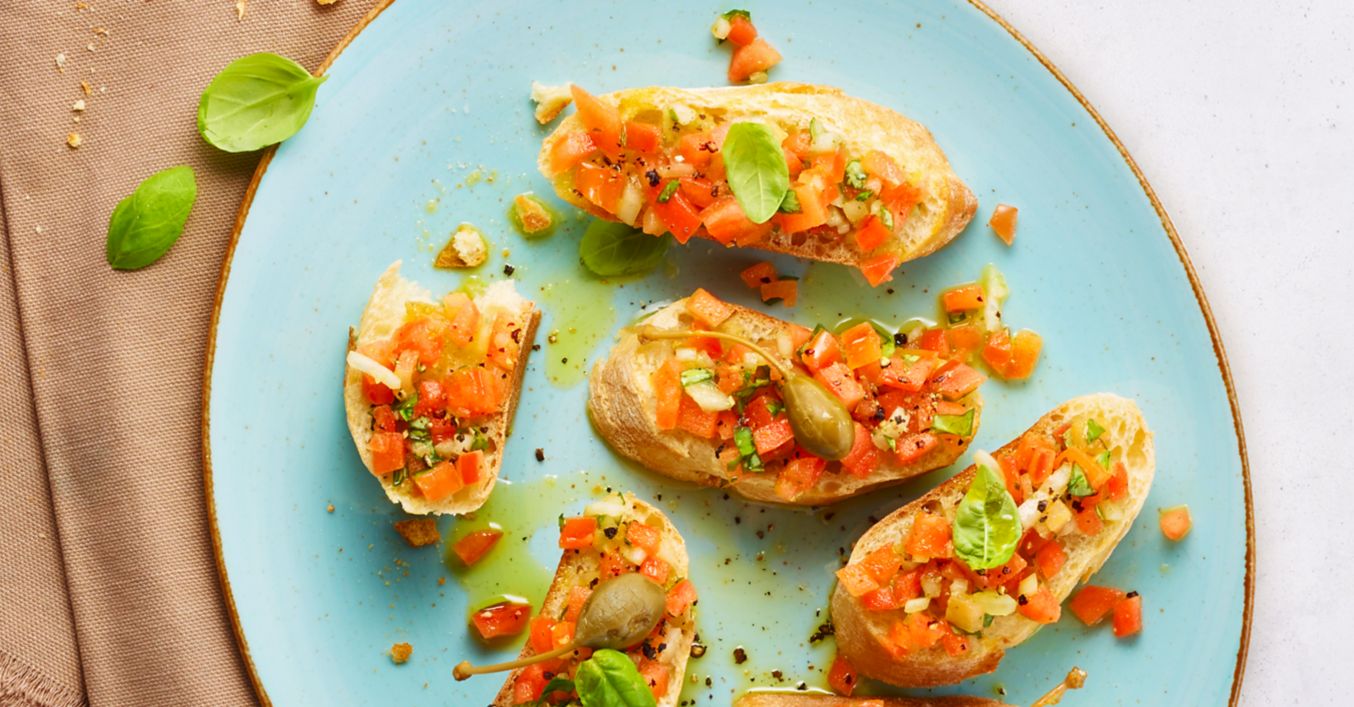 Bruschetta s rajčaty a olivovým olejem