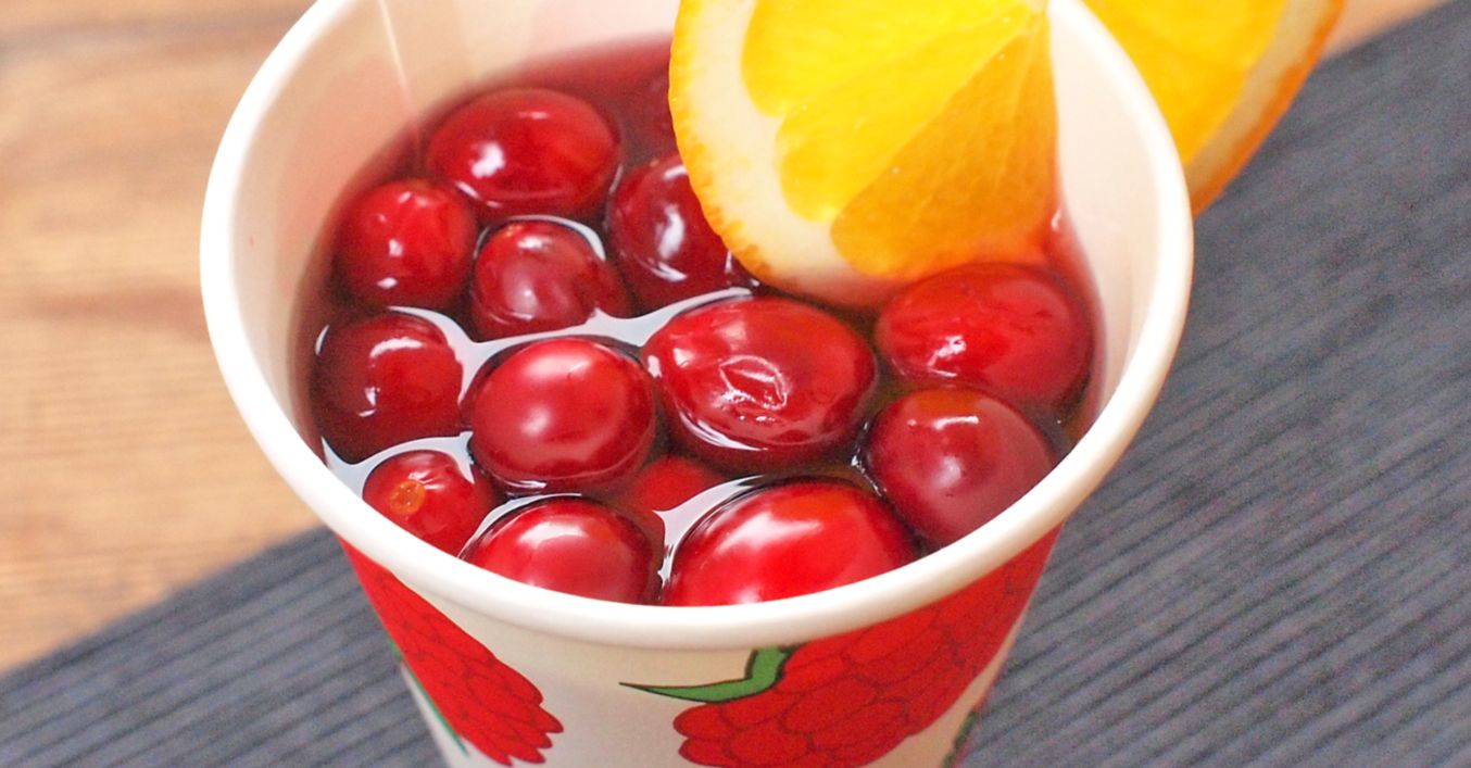Brusinky propláchneme pod tekoucí vodou. Pomeranč oloupeme nožem a nakrájíme na plátky.