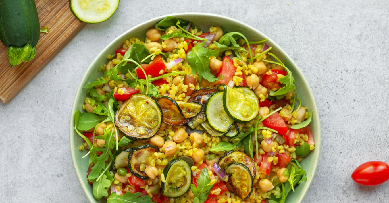Bulgur salát s rajčaty a grilovanou cuketou