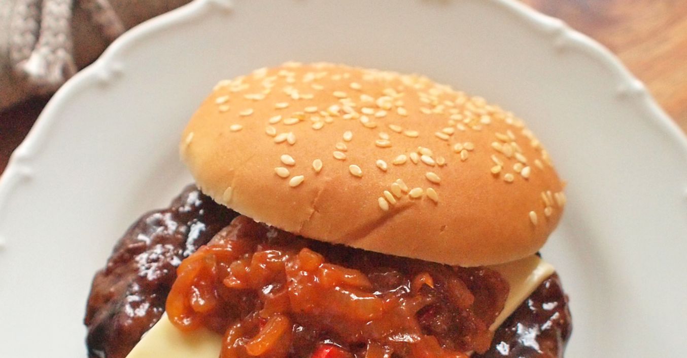Burger s karamelizovanou chilli cibulkou