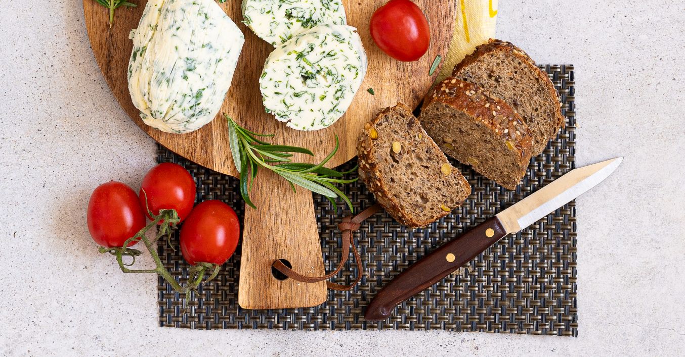 Máslo dejte na potravinovou fólii. Zabalte a srolujte do válečku. Dejte do lednice na 2 hodiny ztuhnout.