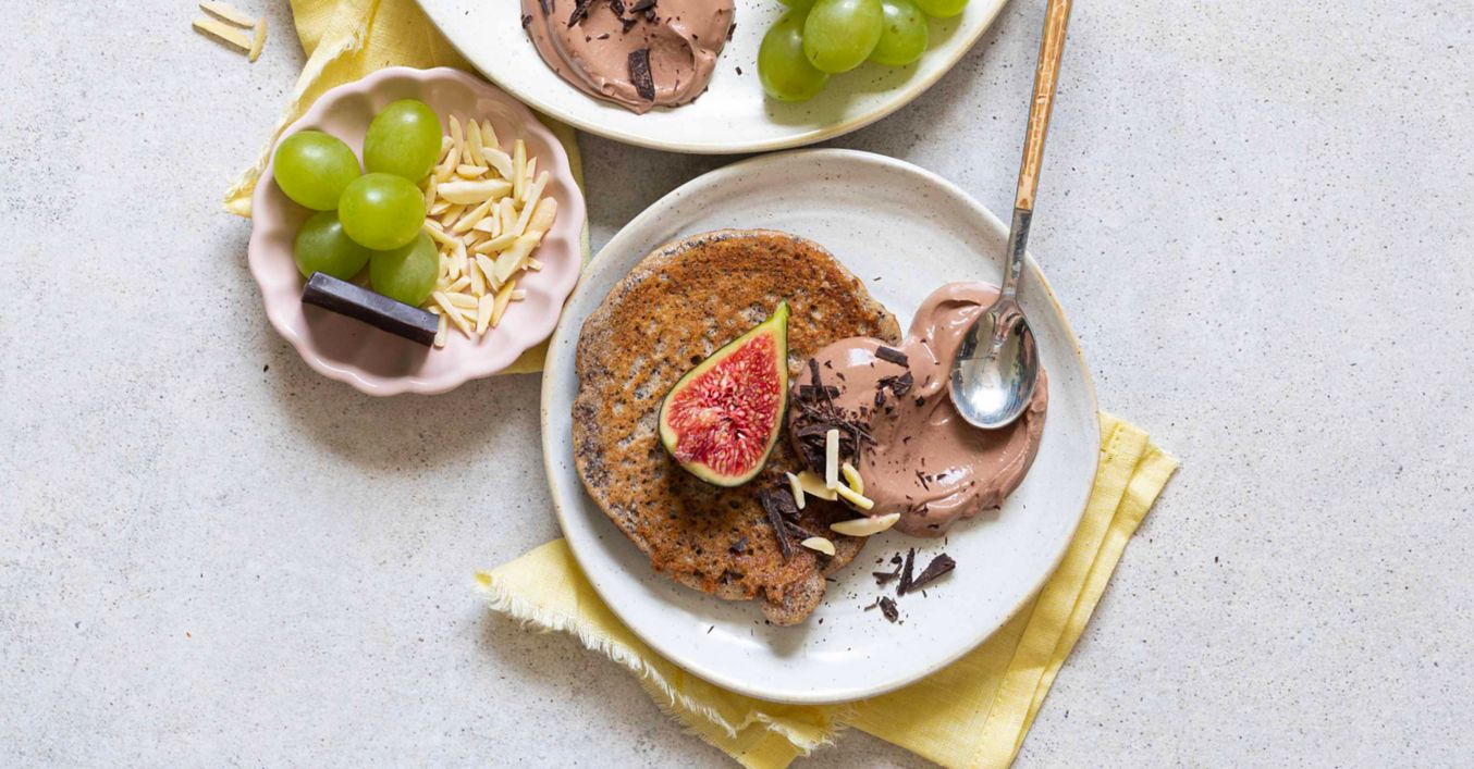 Lívance podávejte s krémem, banánem, fíky a čerstvou mátou.