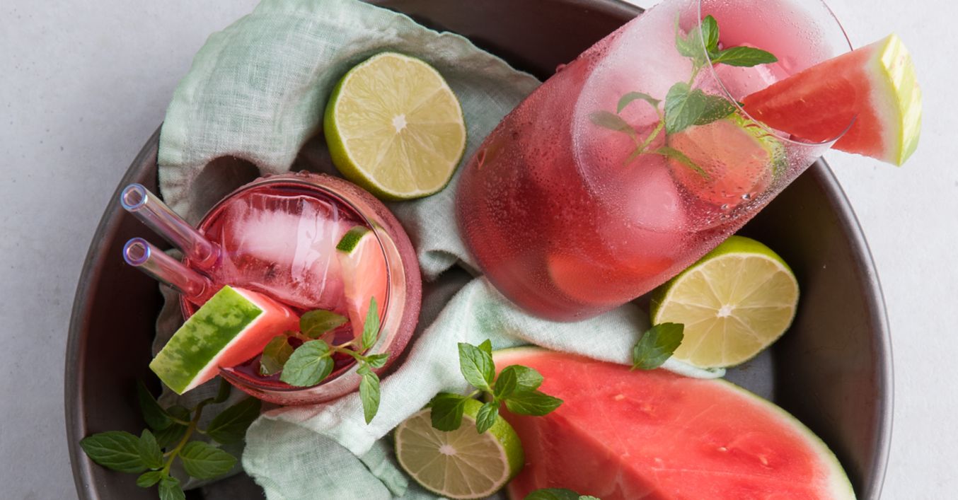 Podávejte ozdobené omytou limetkou a lístky máty.
