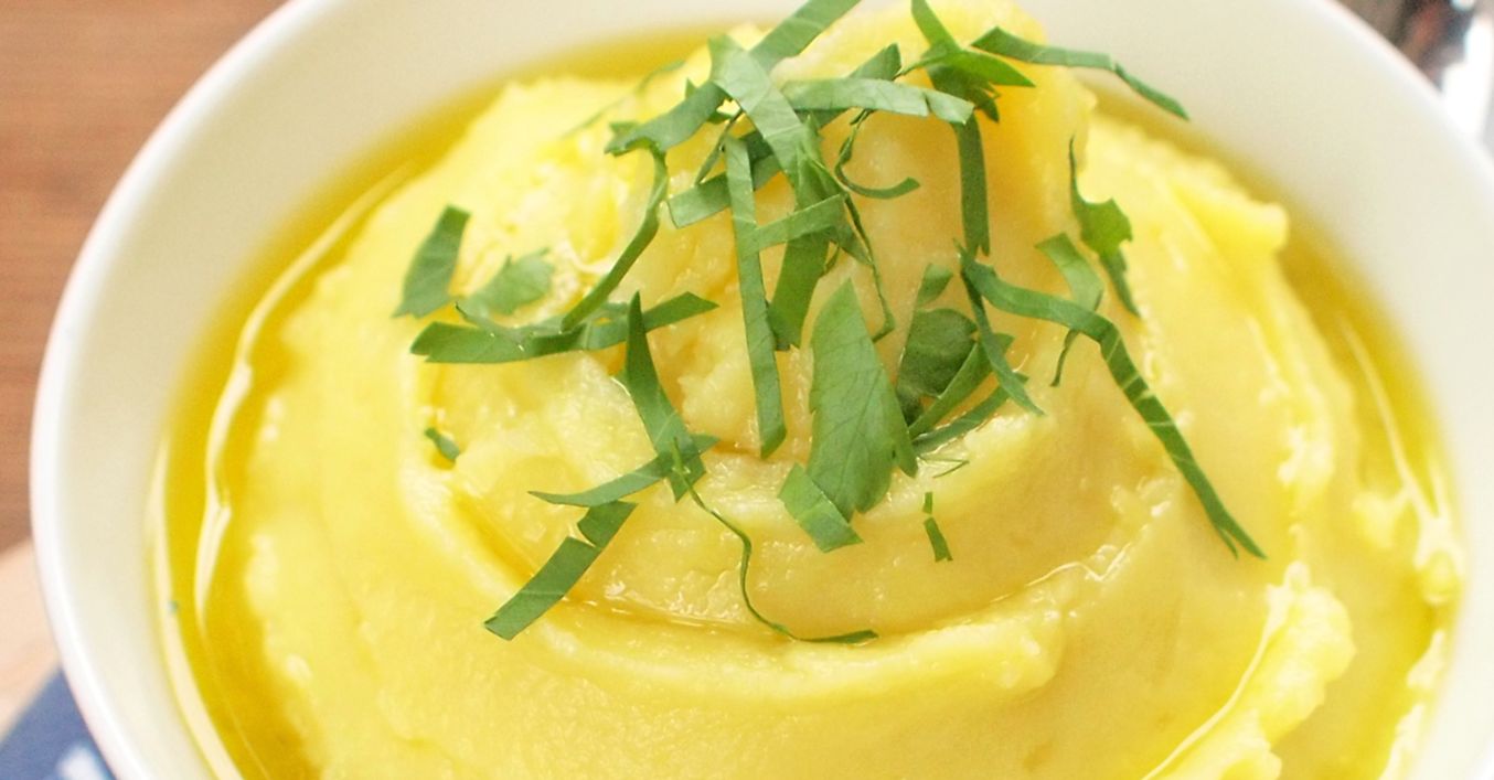 Uvařené brambory scedíme a rozšťoucháme. Přidáme česnek, olivový olej a dochutíme solí a trochou citronové šťávy.