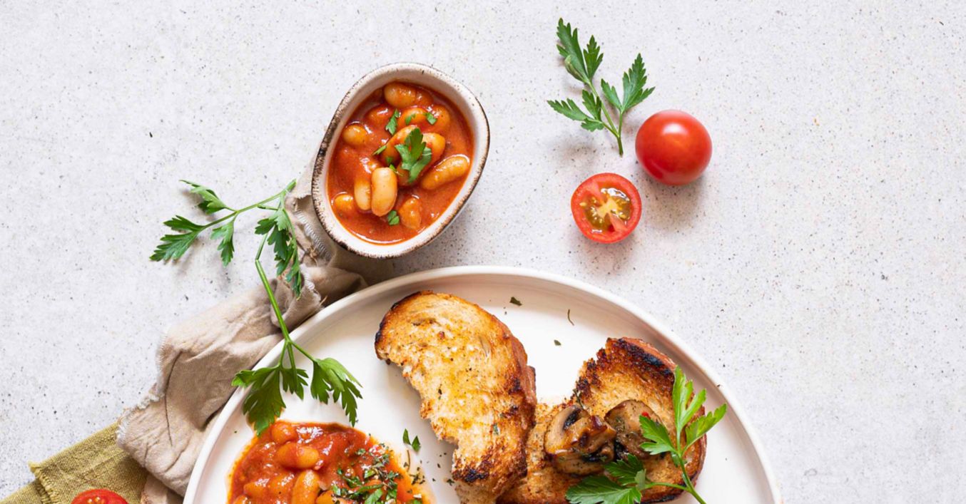 Topinky podávejte s fazolemi, sázeným vejcem, rajčaty a čerstvou petrželkou.