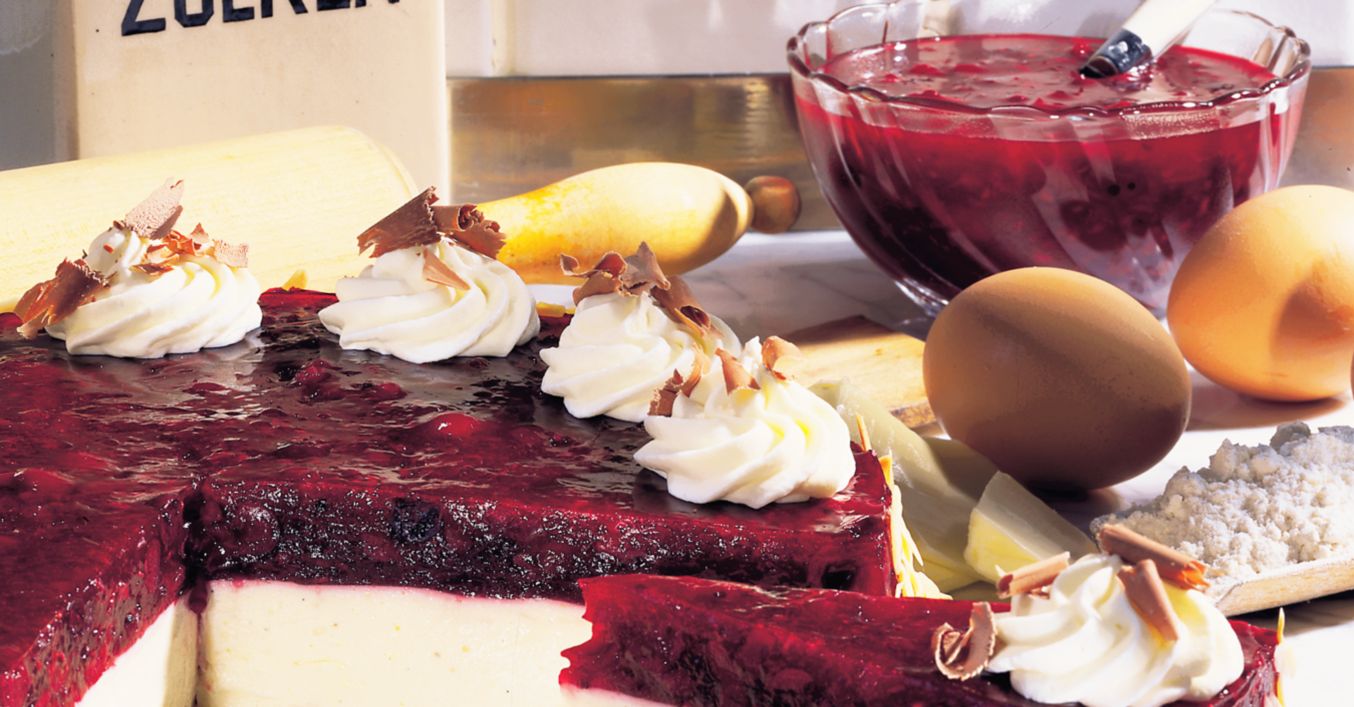 Bílky ušleháme na sníh. Smetanu vyšleháme na šlehačku. Obojí pak opatrně vmísíme do tvarohu a nalijeme do formy s korpusem. Zbytek želatiny rozpustíme v zavařenině, rozprostřeme jako poslední vrstvu a vychladíme v lednici.