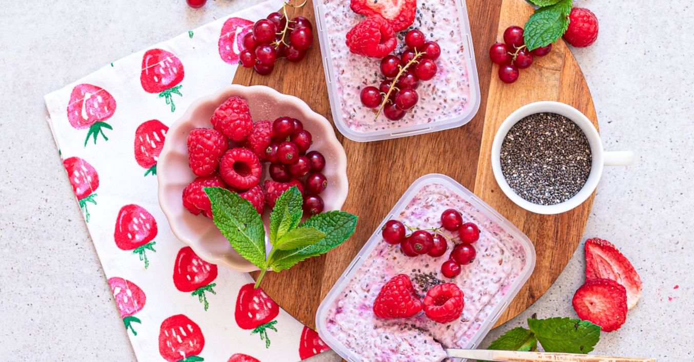 Promíchejte s kokosovým mlékem, tvarohem a chia semínky.