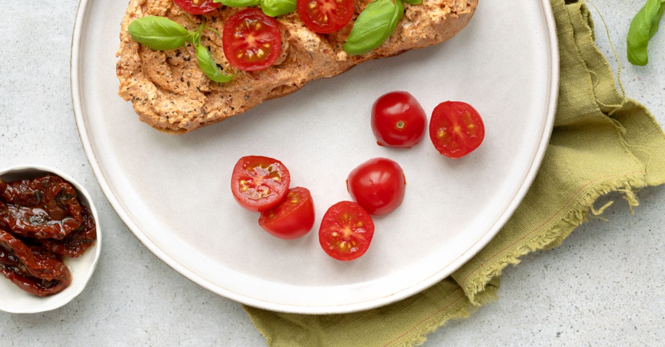 Chléb s pomazánkou ze sušených rajčat