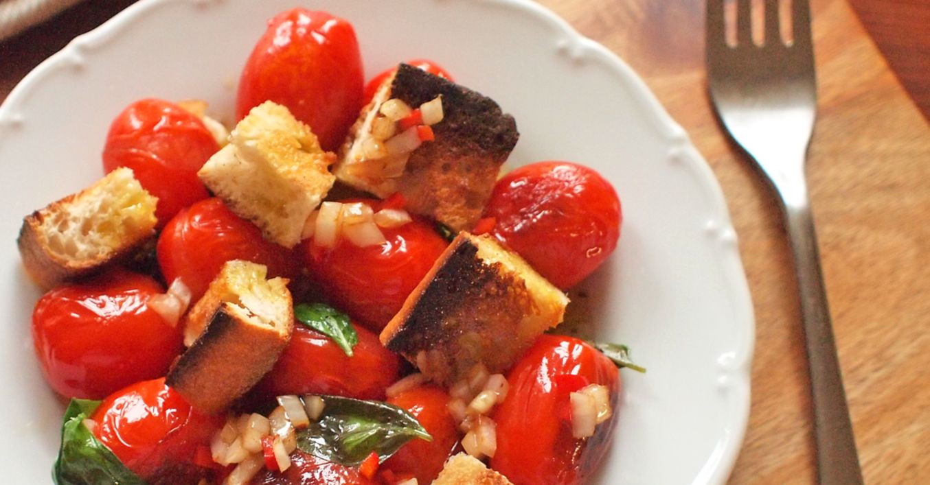 Chlebový salát s pečenými rajčaty
