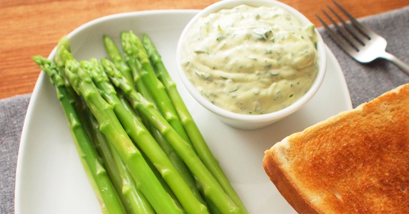 Chřest očistíme, zkrátíme a v dolní třetině oloupeme. Bylinky dobře propereme, necháme okapat a nahrubo nasekáme.