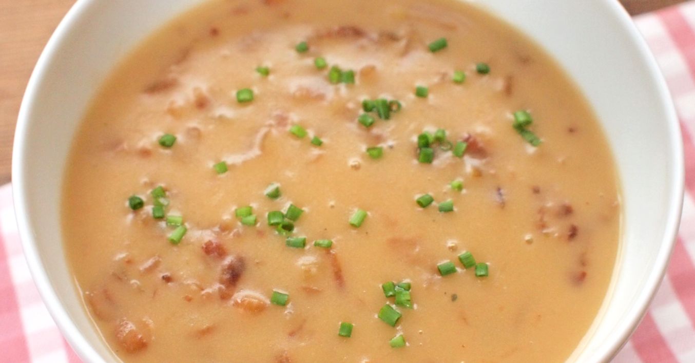 Hotovou cibuli zaprášíme moukou a zasmahneme. Zalijeme vývarem, přidáme svázané snítky tymiánu a povaříme asi 10 až 15 minut. Snítky tymiánu vyjmeme, osolíme, opepříme a rozmixujeme dohladka v mixéru.