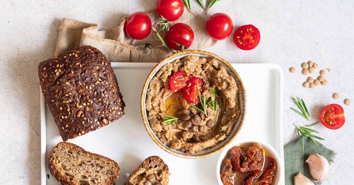 Čočková pomazánka se sušenými rajčaty a bylinkami