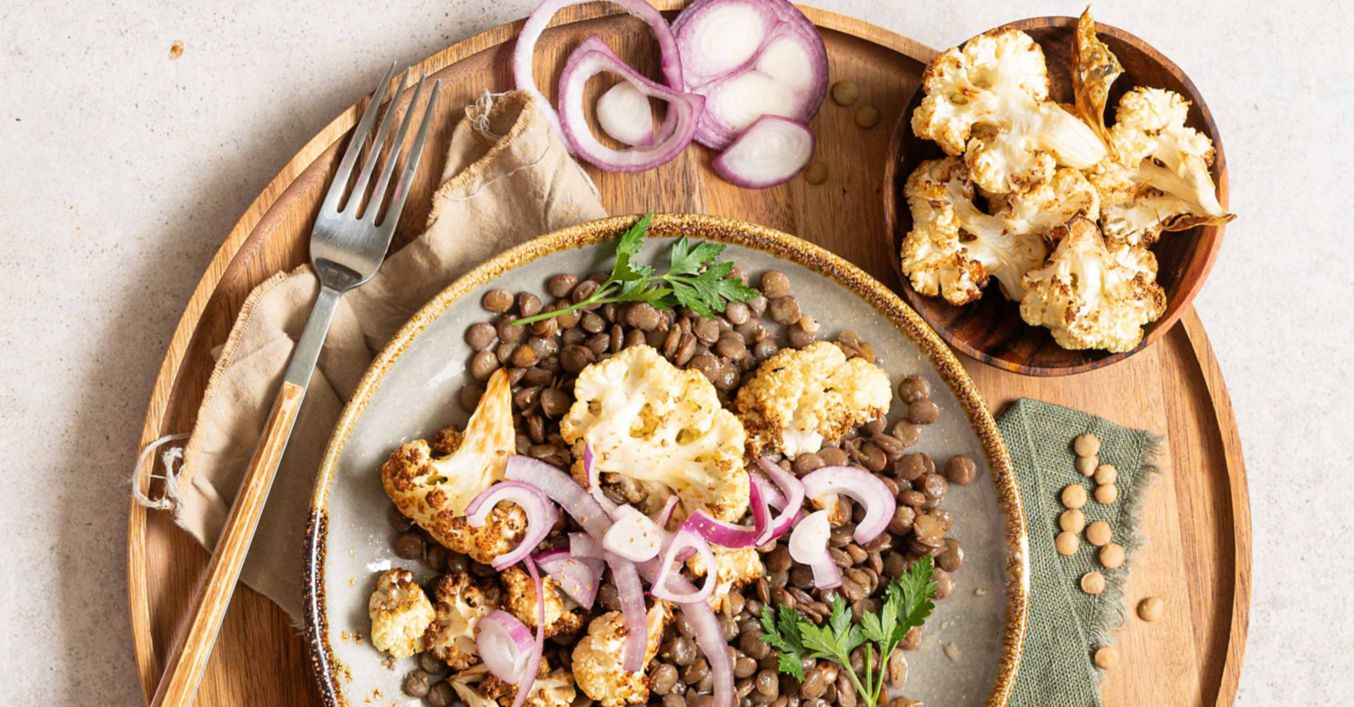 Čočkový salát s pečeným květákem