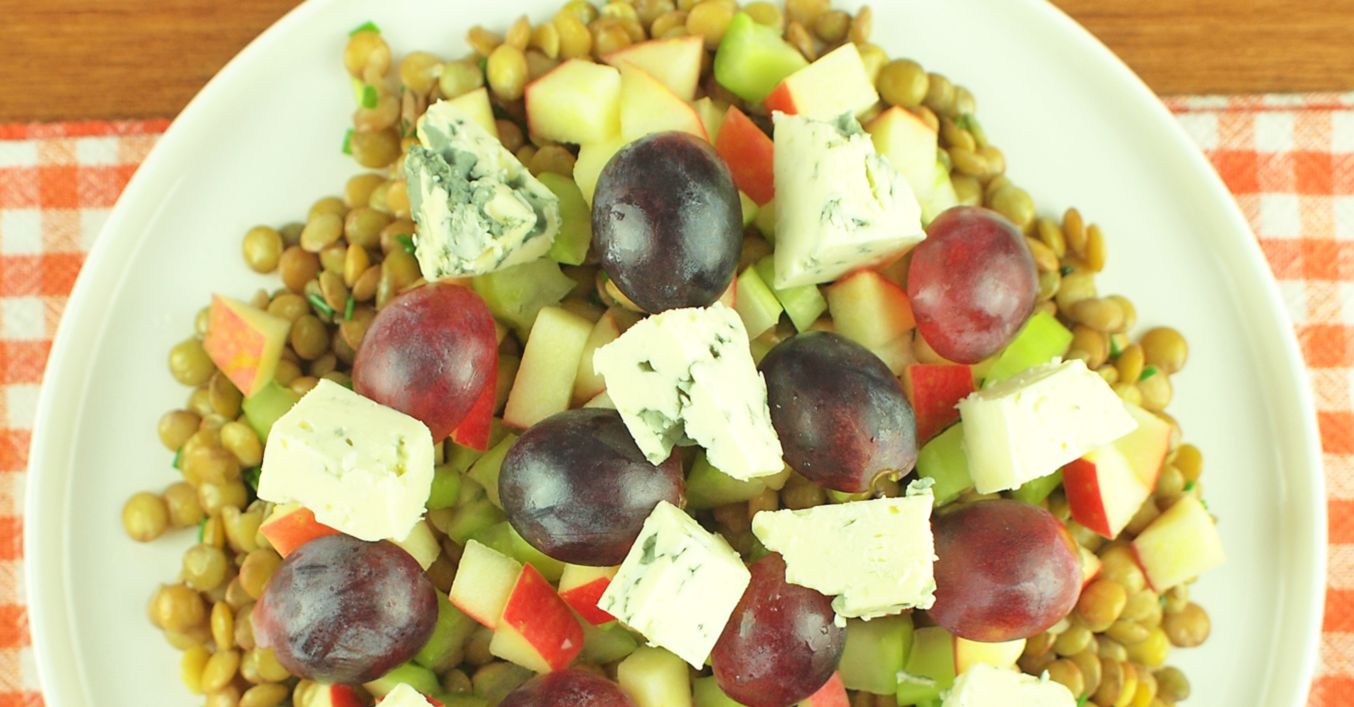 Čočku promícháme s celerem a jablkem a podáváme společně s hroznovým vínem a plísňovým sýrem.