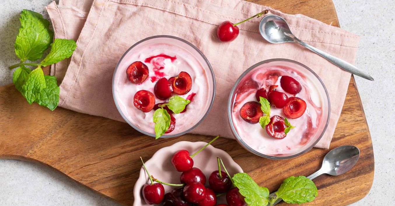 Dezert do skleničky se zakysanou smetanou a třešněmi