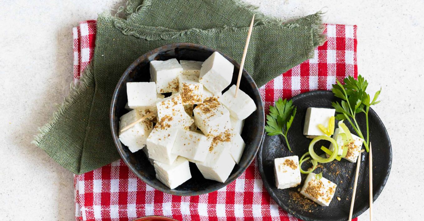 Tvaroh nakrájejte na kostičky. Poté vložte do připraveného solného nálevu.