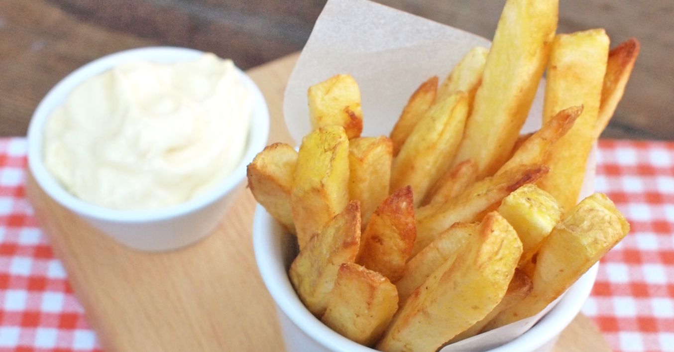 Brambory důkladně umyjeme, očistíme škrabkou na zeleninu a nakrájíme asi na 1 cm silné hranolky. Ty pak namočíme do vody a necháme asi 30 minut odstát.