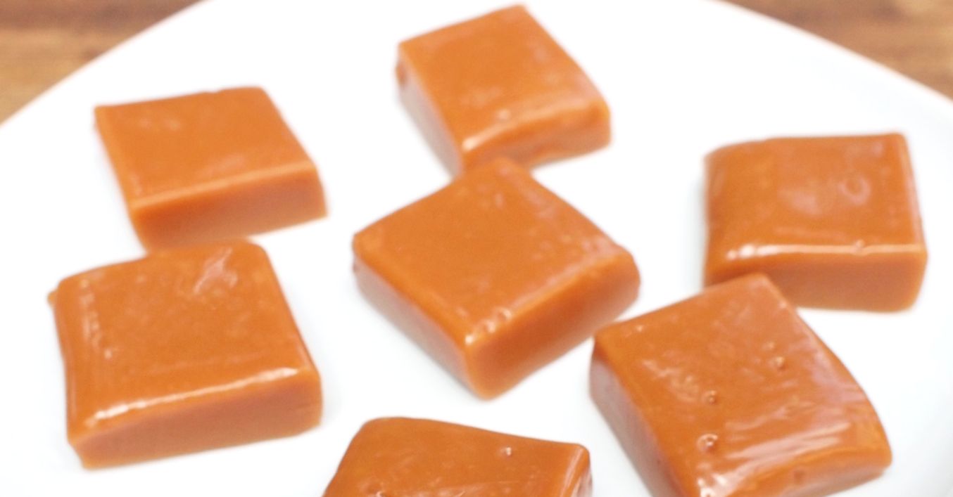 Jakmile karamel získá světle hnědou zlatavou barvu, je hotový. Přelijeme ho do menšího pekáčku vymazaného trochou oleje. Necháme z části vychladnout, a ještě dokud je karamel pěkně tvarovatelný, nakrájíme jej na jednotlivé dílky.