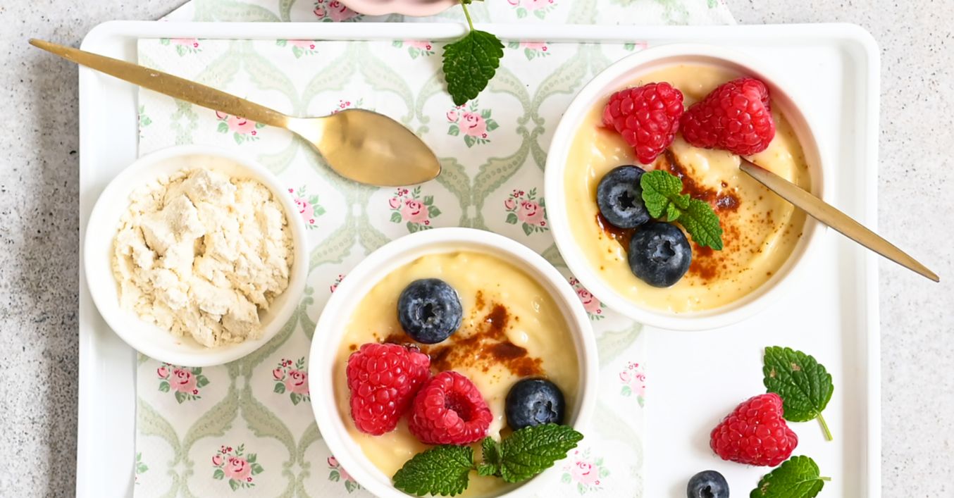 Mléko vlijte do hrnce, přimíchejte pudingový prášek, vejce a proteinový prášek.