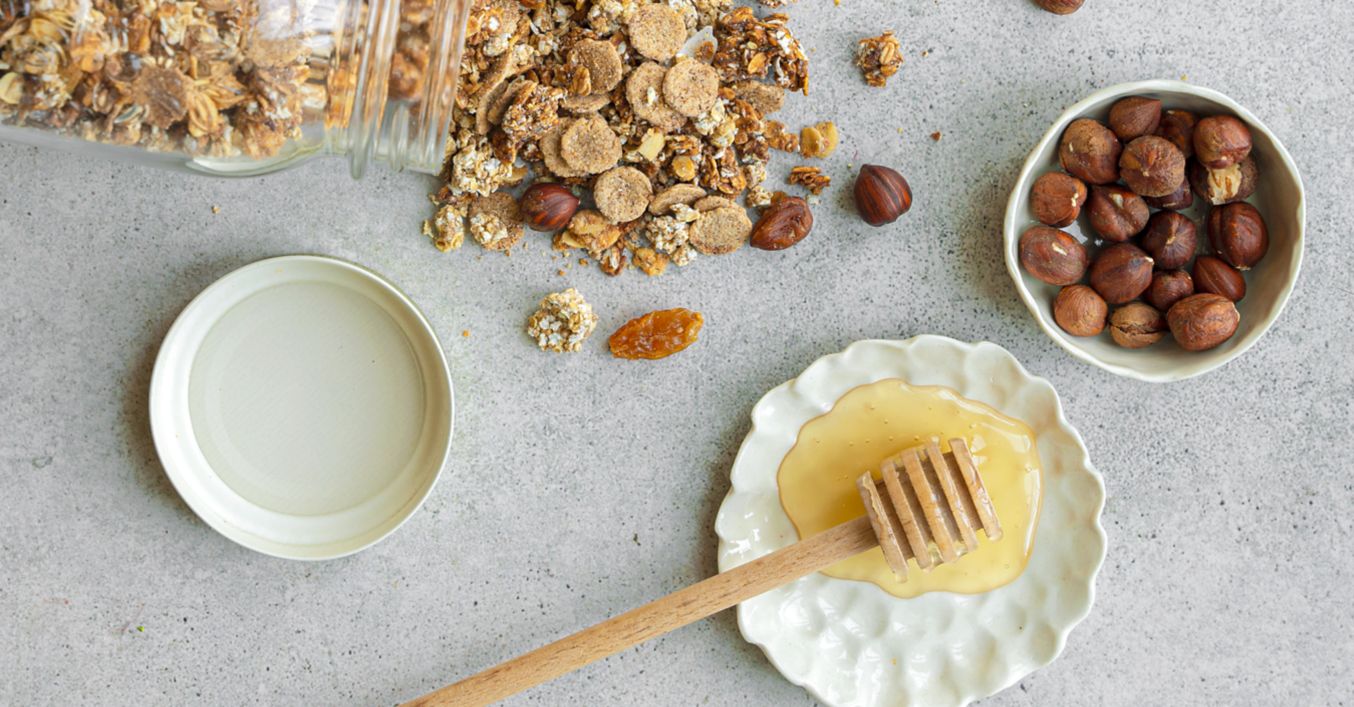 Rozpuštěné máslo smíchejte s vločkami, skořicí, medem a moukou. Dejte na plech vyložený pečicím papírem a pečte 20 minut v troubě rozehřáté na 170 °C. V průběhu pečení míchejte, aby se müsli nespálilo.
