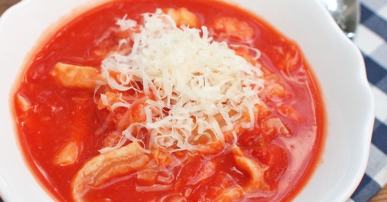 Přidáme rajčata, dršťky a společně na mírném plameni dusíme asi 30 minut. Ke konci zkontrolujeme dochucení. Odstavíme a vmícháme studené máslo. Podáváme se strouhaným parmazánem.
