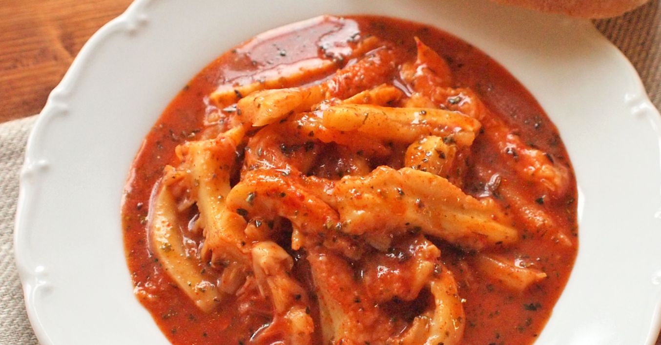 Dršťky propereme a osušíme. Pokud je to potřeba, nakrájíme je na nudličky. Cibuli i česnek oloupeme a nasekáme nadrobno.