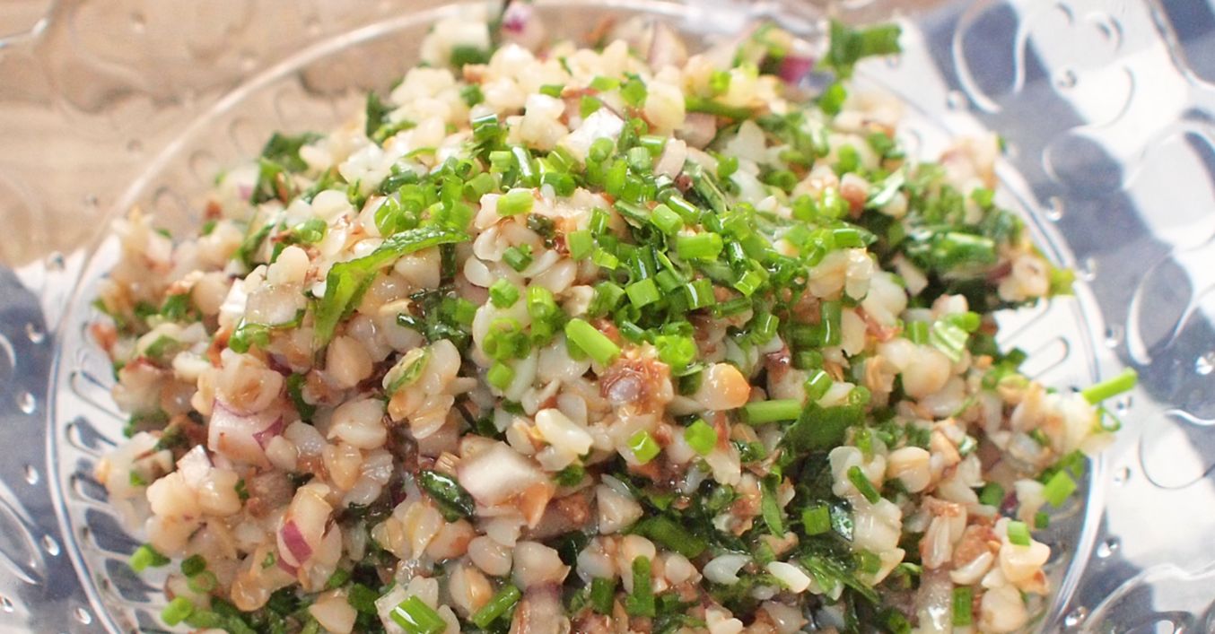 Přivedeme k mírnému varu a pomalu dusíme do změknutí pohanky. Podle potřeby podlijeme vývarem (nebo vodou navíc). Na konci zkontrolujeme dochucení a vmícháme nadrobno nasekané bylinky.
