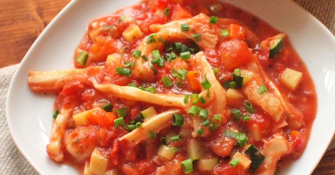 Dušené dršťky s rajčaty a cuketou